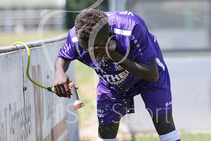 - Beschreibung: Im Bild: Fousseni Coulibaly (#13 VFR Neuburg) duscht sich vor der Einwechlung noch einmal ab. Fussball - Herren - Landesliga Südwest - Saison 2019/2020 - VFR Neuburg - VFB Eichstätt - Foto: Ralf Lüger